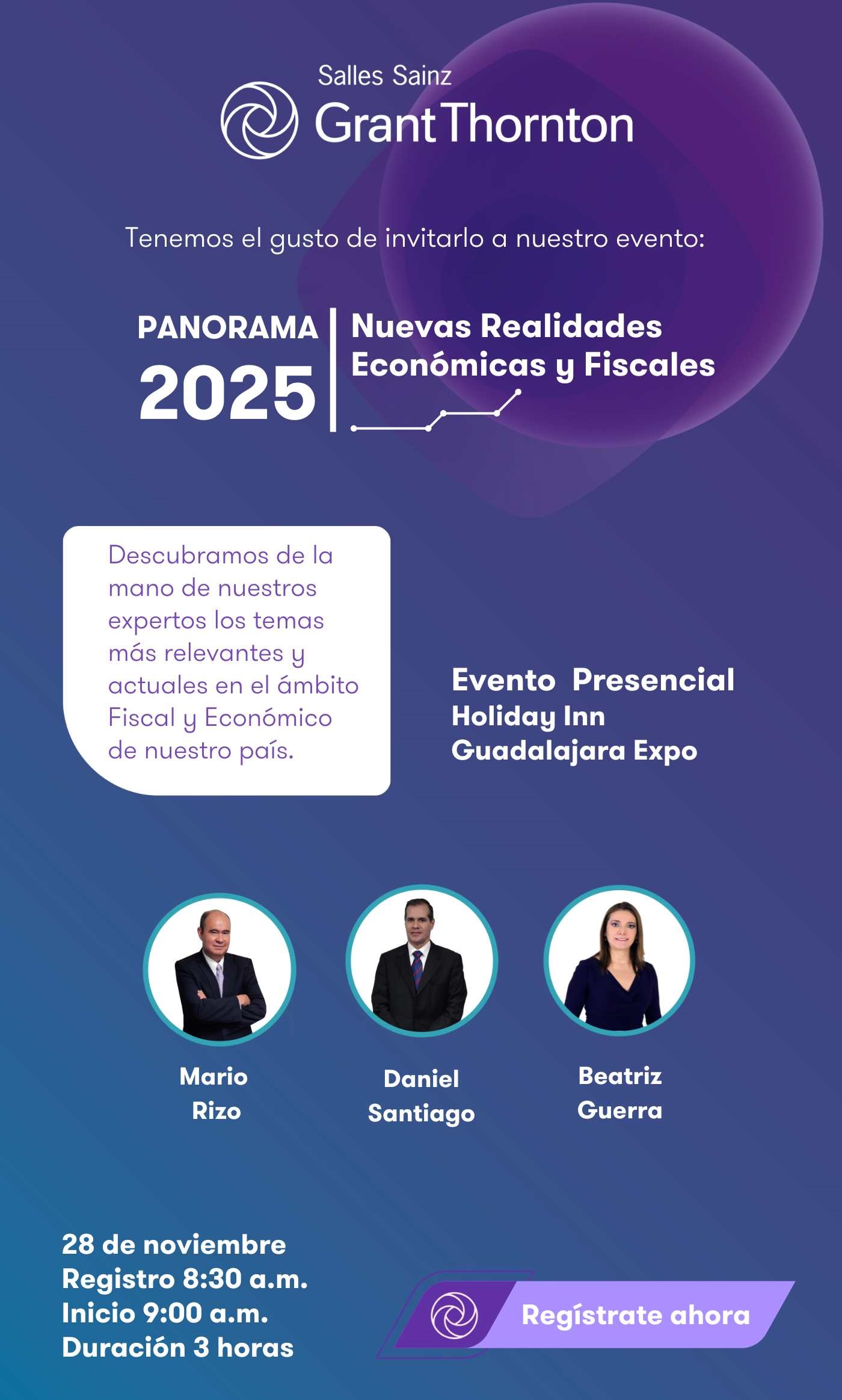 Exploraremos las tendencias y cambios económicos y fiscales para el próximo año. Contaremos con la presencia de nuestros Socios expertos en temas fiscales, quienes presentarán sus perspectivas y análisis de manera detallada.